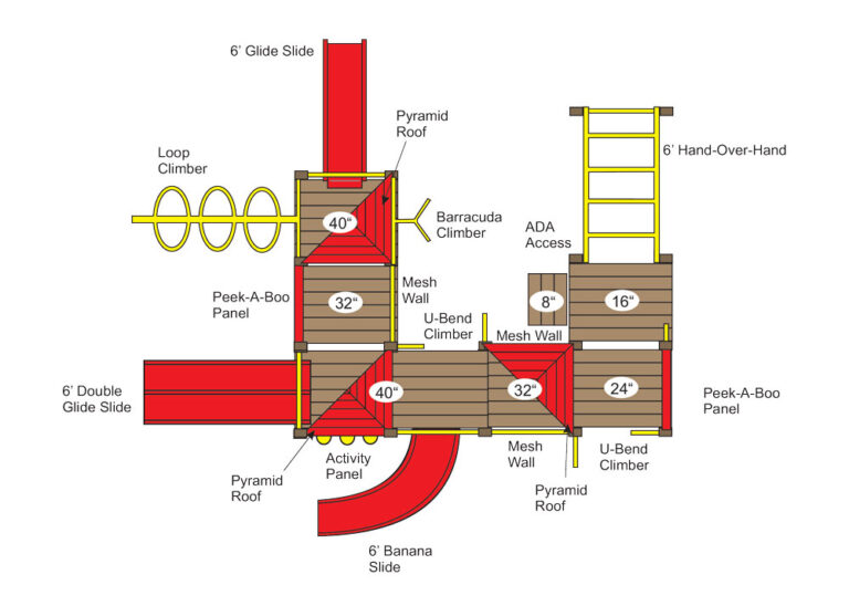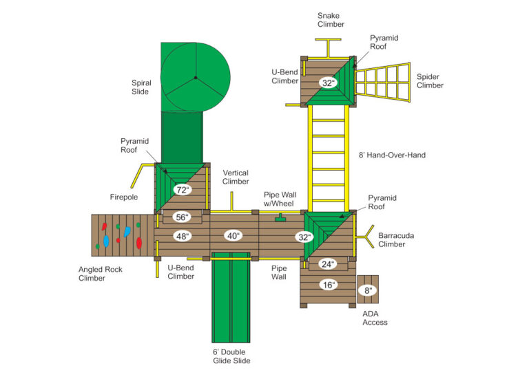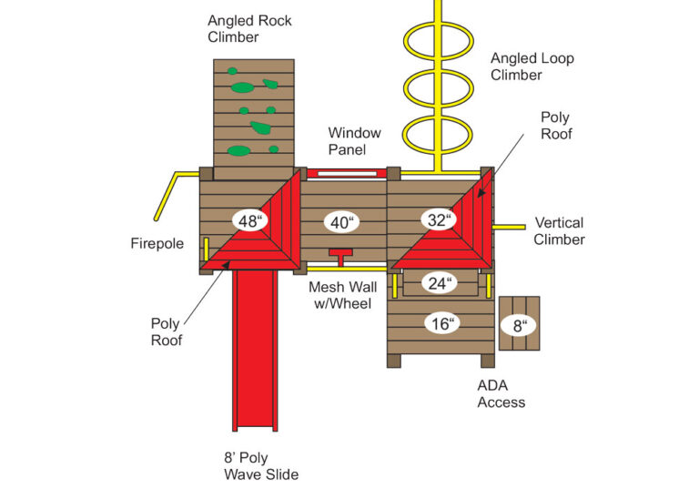 All our commercial playground equipment is manufactured using 4×6, 6×6 and 5/4×6 recycled HDPE plastic. Created by our in-house design team, these completely modular playgrounds can be custom designed to fit any budget, area, and age group!
